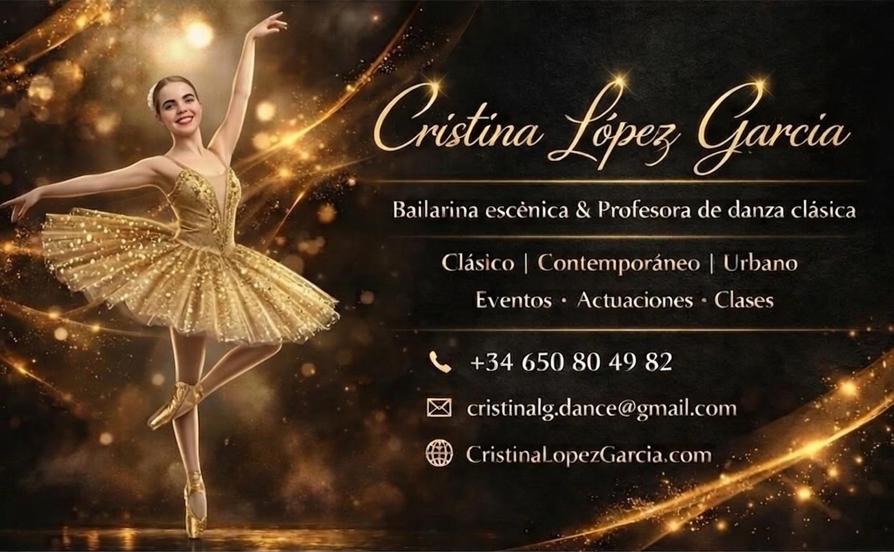 A mis 16 años, desarrollo mi carrera artística entre el escenario, la enseñanza y la formación continua en dos academias de danza, donde refuerzo mi técnica, disciplina y versatilidad escénica